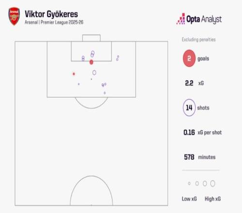 尽管因脱衣庆祝染红略显冲动,但整体表现十分亮眼。他的3个非点球英超进球在联赛中名列前茅,场均非点球预期进球值达0.45,高居队内榜首。