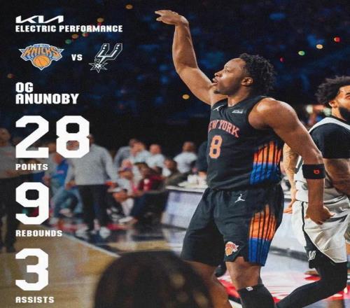 拿到杯赛MVP的布伦森,今天25分8助攻,27中11的效率算得上糟糕了,但在关键时刻,他就是能投中一些稳定的中距离。包括今天拿到最高分28分的OG-阿奴诺比,你看不到他太多的持球强攻,分数都来自于弱侧空位三分以及转换进攻,朴实无华但足够致命。