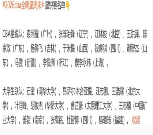 而到时CBA星锐会对阵大学生联队,看看到时双方能不能给到一些惊喜的表现吧。