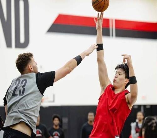 激烈!杨瀚森亮相开拓者队内训练,硬抗2米18美国大汉,拳拳到肉